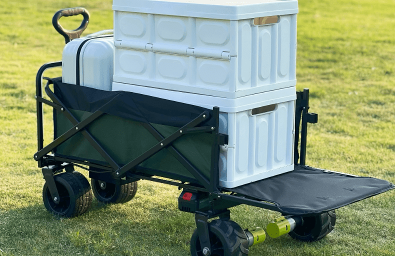 轻巧便携的电动助力推车,适合商超和建筑工地等运输场景,最大承重 150kg。